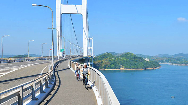 愛媛県今治市と広島県尾道市を6つの橋で結ぶ全長約70㎞にも及ぶサイクリングロード。