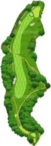 グリーンの周囲が森に囲まれてOBゾーンが近いため、バンカーに入れるとホームランが