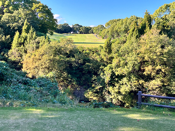 フェアウェイは美しく蛇行し、グリーンに向かって下っていきます。